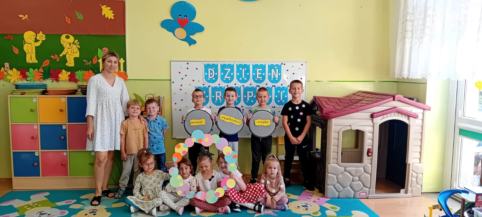 Dzień Kropki to więcej niż ubiór bluzki w kropki. To święto, które przypomina nam, że warto próbować ! 15 września dzieci z oddziału przedszkolnego obchodziły Międzynarodowy Dzień Kropki. Celem tego dnia było wzbudzenie u dzieci kreatywności, pomysłowości oraz zachęcenie ich do tworzenia, działania. Było kolorowo i radośnie, a zabawy wypełnione były kolorowymi kropkami. Dzieci uważnie wysłuchały opowiadania jak to zwyczajna kropka zmieniła świat małej dziewczynki o imieniu Vashti. Historia ta uświadomiła przedszkolakom, że każdy ma jakieś ukryte zdolności lub talent. Nie zabrakło zabaw matematycznych, muzycznych i plastycznych. Wszystkie zabawy z kropką w roli głównej dostarczyły dzieciom mnóstwo radości i satysfakcji. Cały dzień upłynął w miłej, radosnej i kropkowej atmosferze.