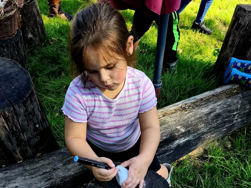 22 września dzieci z oddziału przedszkolnego Szkoły Podstawowej im. Prymasa Tysiąclecia w Mieczynie powitały tegoroczną jesień w niezwykłym i urokliwym miejscu – Ostoi Dworskiej Grzegorza Szymańskiego w Leśnicy.