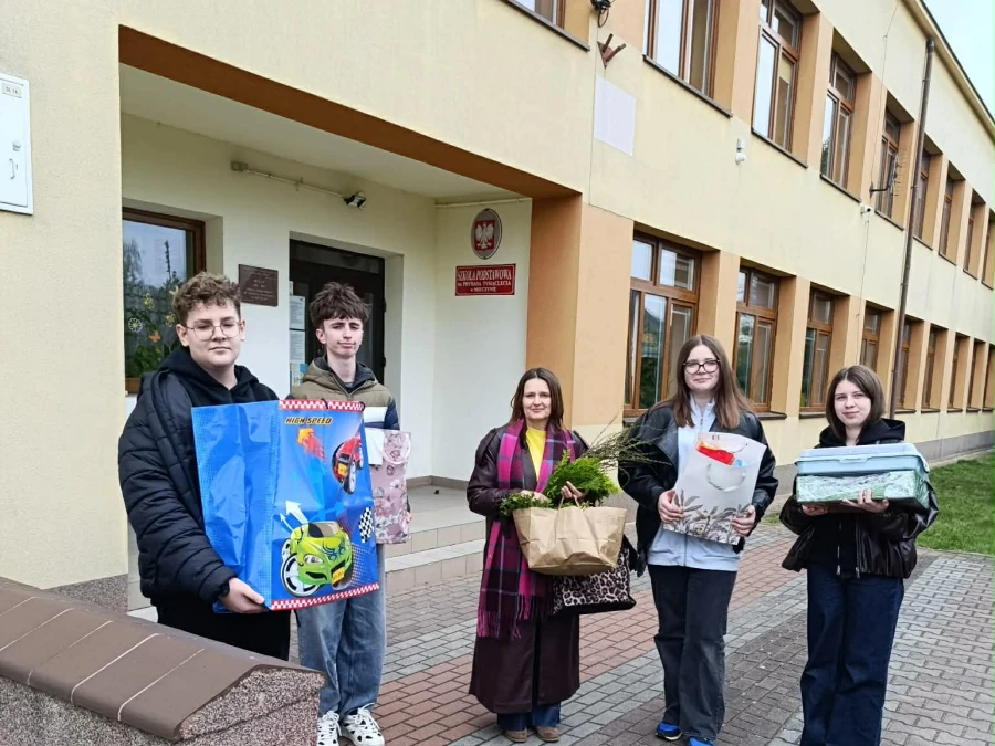 Inicjatorkami tego pięknego przedsięwzięcia były panie: Ewelina Zasada, Agata Frączek oraz Dorota Klimczyk-Niedbał, które z ogromnym zaangażowaniem koordynowały całą akcję. Dzięki wielkim sercom uczniów, rodziców oraz nauczycieli udało się zebrać wiele słodyczy. W ramach tej wyjątkowej inicjatywy uczniowie klasy 7, wraz z psychologiem i pedagogiem szkolnym, odwiedzili Dom Dziecka w Nagłowicach. Wizyta miała niezwykle ciepły i świąteczny charakter. Jednym z najważniejszych punktów spotkania były warsztaty tworzenia palm wielkanocnych, podczas których dzieci wspólnie przygotowywały piękne, kolorowe palmy, rozwijając swoją kreatywność i integrując się w serdecznej atmosferze. Ogromnym wzruszeniem dla wszystkich uczestników było zaproszenie na wspaniałe przedstawienie przygotowane przez dzieci z Domu Dziecka z okazji Świąt Wielkanocnych. Młodzi artyści zaprezentowali się znakomicie, a ich występ dostarczył wielu emocji i wzruszeń. To wydarzenie było nie tylko okazją do niesienia pomocy, ale również piękną lekcją empatii, życzliwości i wspólnego przeżywania świątecznego czasu. Dziękujemy rodzicom którzy przyczynili się do wypieków ciast które jako poczęstunek powędrowały na warsztaty. Ta inicjatywa pokazała, jak ważne jest dawanie czegoś od siebie, dzielenie się dobrem i niesienie radości innym. Była to cenna lekcja empatii, życzliwości i otwartości na potrzeby drugiego człowieka.
